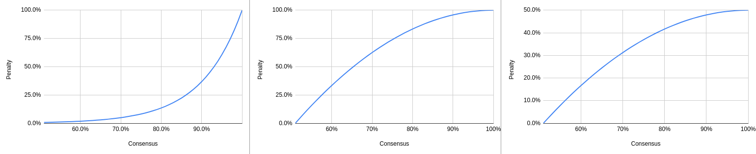 Governance participants will redeem their share of the treasury at each proposal, but instead of withdrawing their entire NAV value, a penalty is retained in the treasury proportionally to the consensus around the proposal, defined as