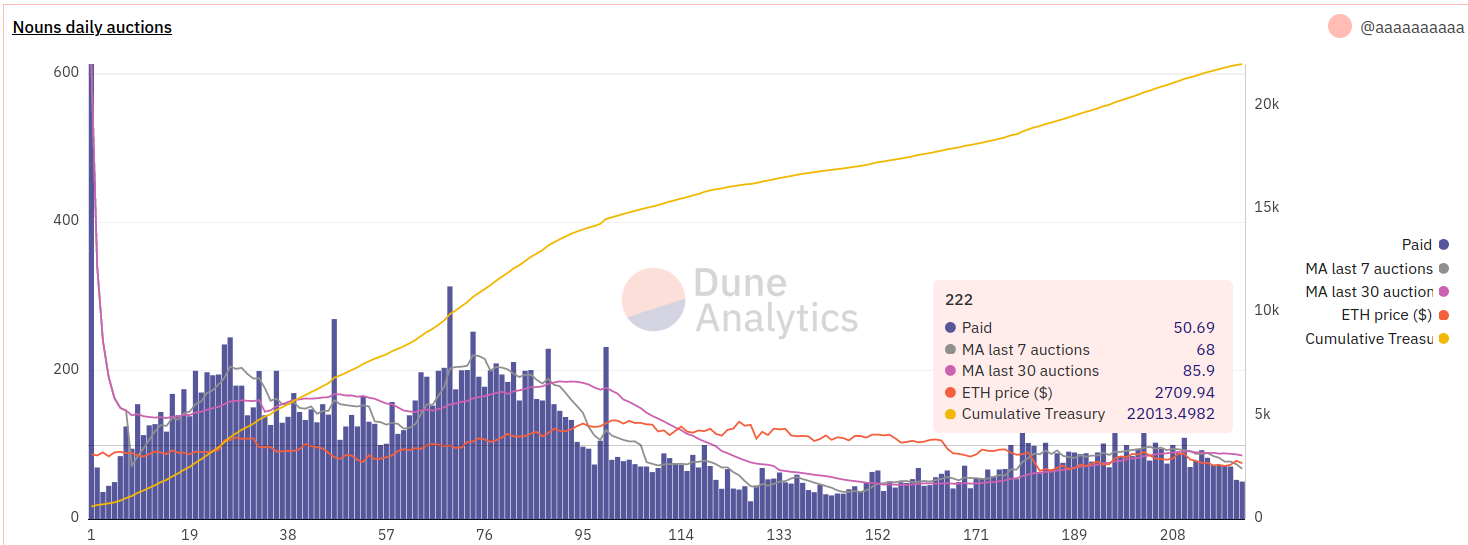 Every entry under the fair treasury value per Noun essentially turns into a redeemable call option on the activities of the DAO at the expense of those who actively contribute while preserving the long underlying long exposure to ETH. This represents an economic incentive for free riders to join while not providing any meaningful contribution to the DAO, hence degrading the collective decision-making process quality.