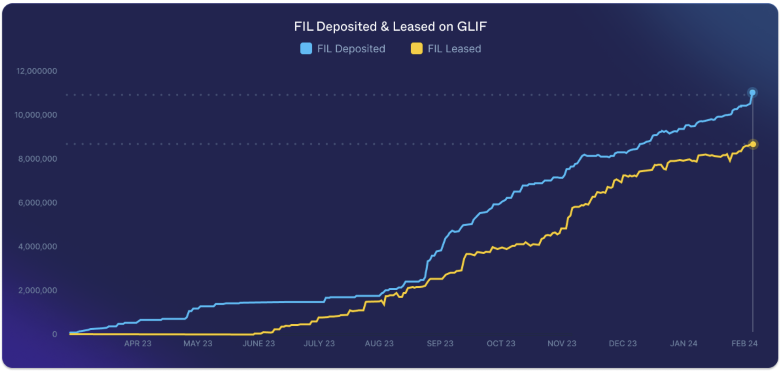 We observe that many teams are taking a longer view to bootstrap liquidity on their network and also using dynamic adjustments to token inflation to preserve sustainability over headline APY. So while we may not see the heady yields of DeFi Summer, we will see more compelling organic yields which we invite as ultimately more healthy for the entire space. In our case study of GLIF we see a more gradual yield-incentivization schedule. GLIF acts somewhat similar to Lido or Jito in their respective ecosystems by increasing capital efficiency since deposited tokens have the ability to be rehypothecated. Prior to the launch of the Filecoin Virtual Machine (FVM)—the Filecoin network was bottlenecked with capital inefficiencies. Storage Providers (the network’s “miners”) didn’t have a permissionless or efficient way to borrow FIL (Filecion’s native token) to use as mining collateral, and the majority of FIL token holders also lacked a way to efficiently evaluate and deploy FIL to storage providers and earn rewards. I believe this is why we've seen such outlier growth from GLIF in recent months.