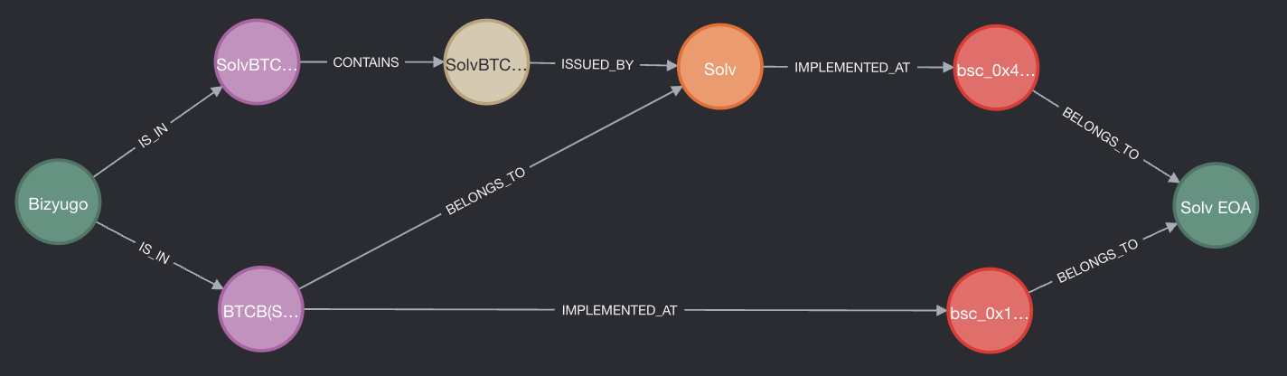 In the query below, we reveal the subject portfolio’s exposure to one EOA address through the SOLV protocol. Using the capital propagation method described earlier, we calculate a total of $120,000 worth of BTC (2) that could potentially be siphoned by this wallet, resulting in a 0.4% loss at the portfolio level, which currently represents the equivalent of one month of yield in the BTC-yielding ecosystem.