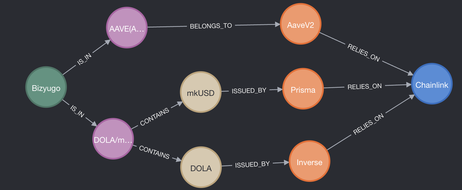 Below is an example of the top3 dependency on the Chainlink oracle obtained through AAVE, mkUSD and DOLA positions.